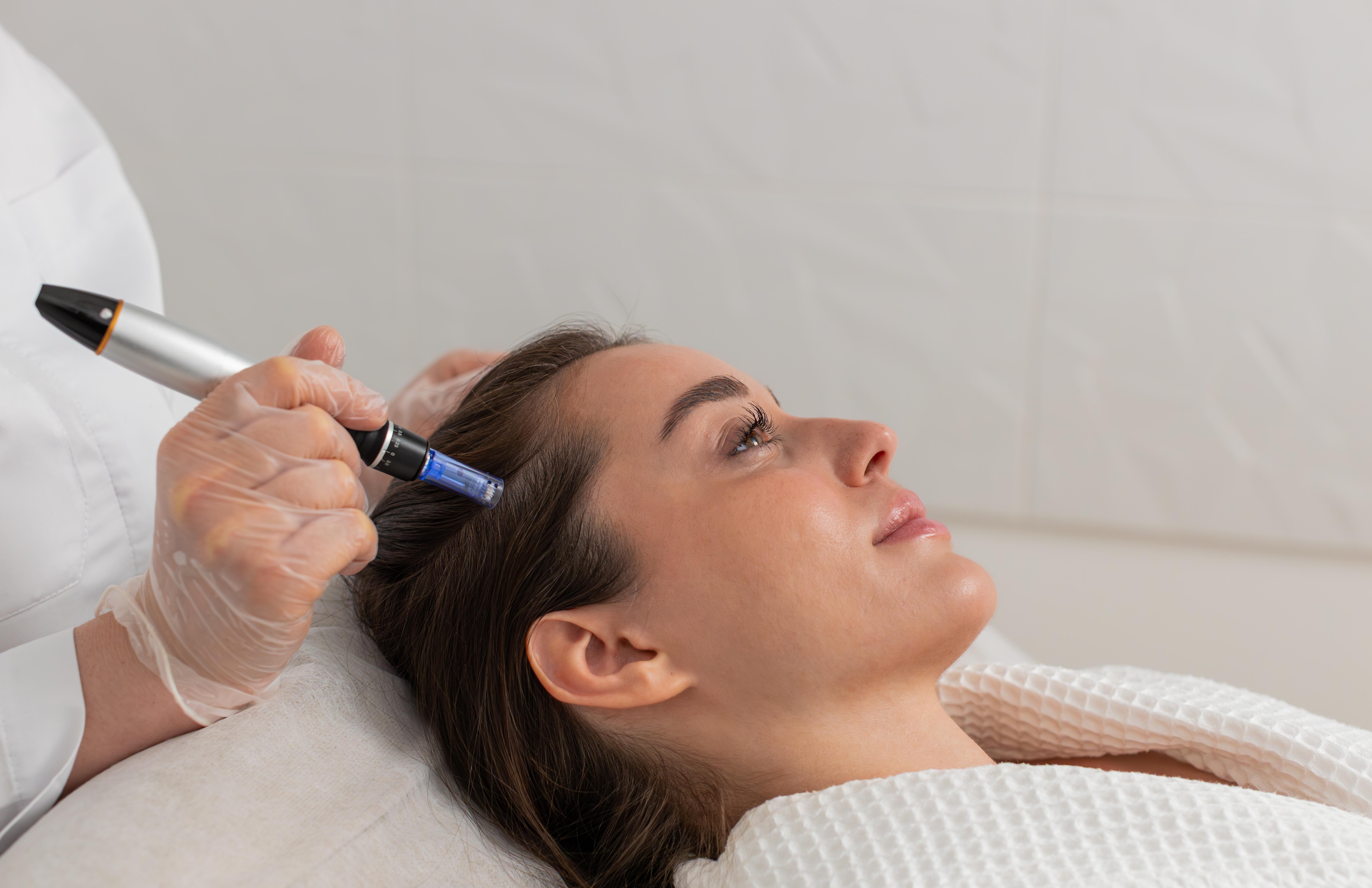 Micro-needling is a minimally invasive procedure that uses fine needles to create tiny punctures in the scalp, stimulating collagen production and promoting healthier hair growth.
