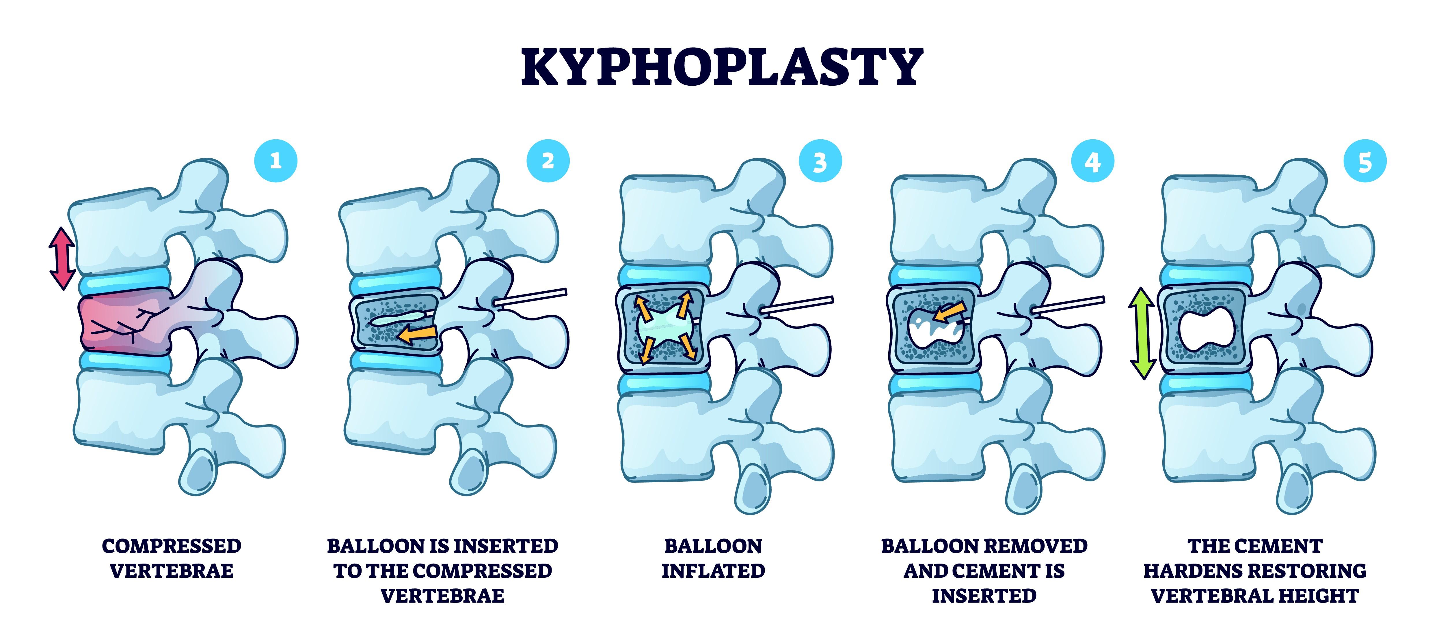 Kyphoplasty is a minimally invasive spinal procedure designed to help stabilize vertebral compression fractures and reduce related pain. The procedure involves restoring vertebral height and supporting spinal stability and is performed under medical guidance after appropriate evaluation.