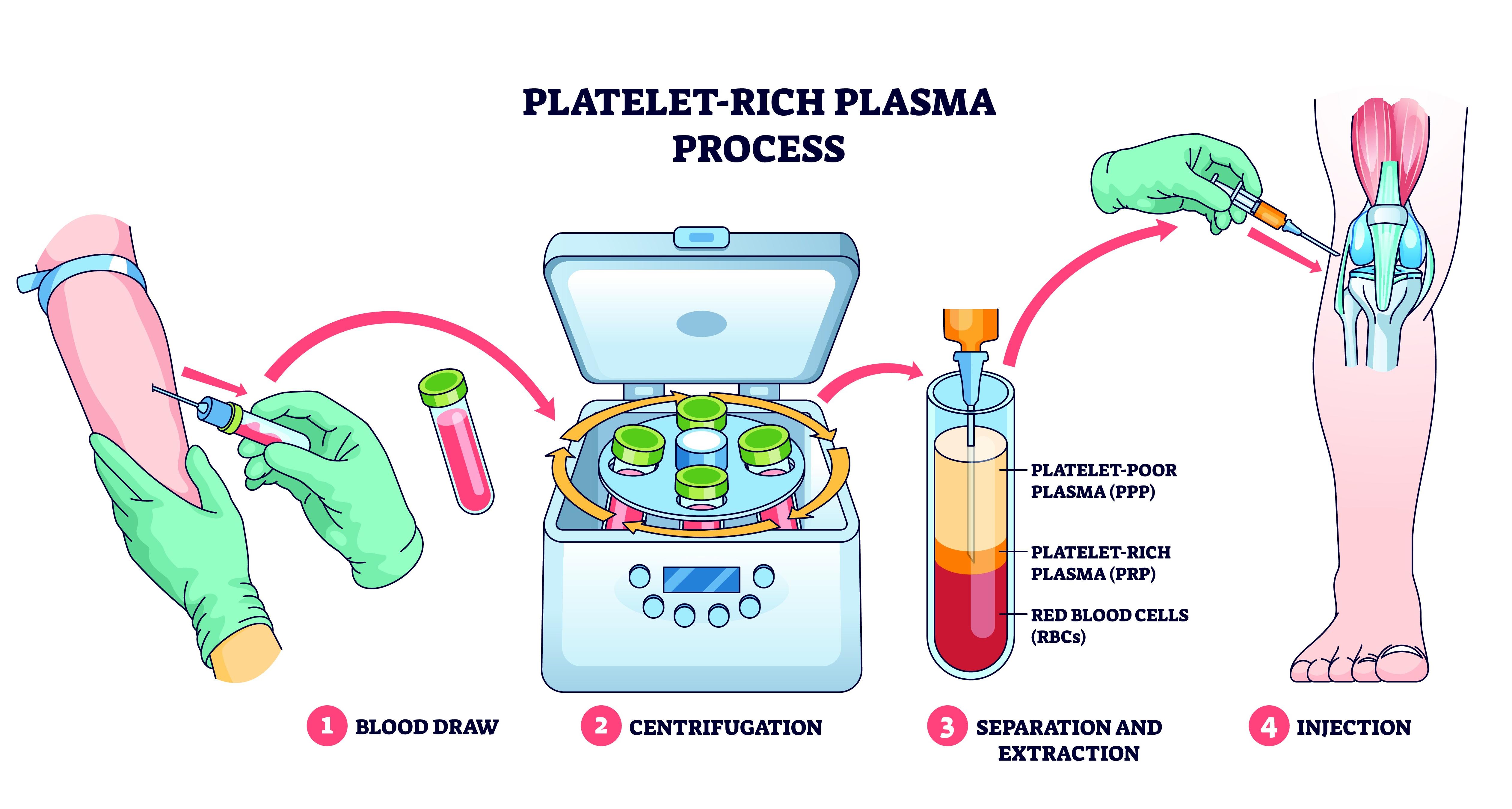 PRP therapy uses a concentrated portion of your own blood that is rich in platelets and growth factors. It is designed to support the body’s natural healing process and tissue recovery by enhancing cellular activity at the targeted area. PRP is prepared and administered under medical supervision following appropriate evaluation.