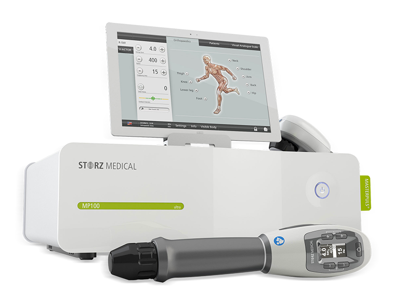 아나파에서 사용하는 체외충격파 장비 중, 우선 방사형 체외충격파는 스위스 제품인 스톨츠(Storz)의 최상위 기종인 마스터플러스 MP200입니다. 아주 강력한 방사형 충격파를 보내주는 장비로 뭉친 근육을 풀어주거나, 근막통증 증후군 치료에, 집중형 체외충격파 후 주변 치료용으로 아주 유용한 충격파 장비입니다.